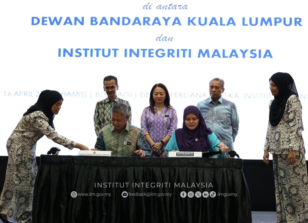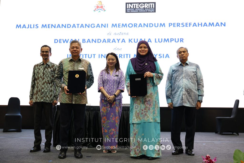 MoU ini ditandatangani oleh YBhg. Datuk Seri Noridah binti Abdul Rahim, Presiden dan Ketua Pegawai Eksekutif Institut Integriti Malaysia dan YBhg. Datuk Seri TPr Fadlun bin Mak Ujud, Datuk Bandar Kuala Lumpur dan disaksikan oleh YBhg. Tan Sri Shamsul Azri bin Abu Bakar, Ketua Setiausaha Negara merangkap Pengerusi IIM dan YB Puan Hannah Yeoh, Menteri di Jabatan Perdana Menteri (Wilayah Persekutuan).