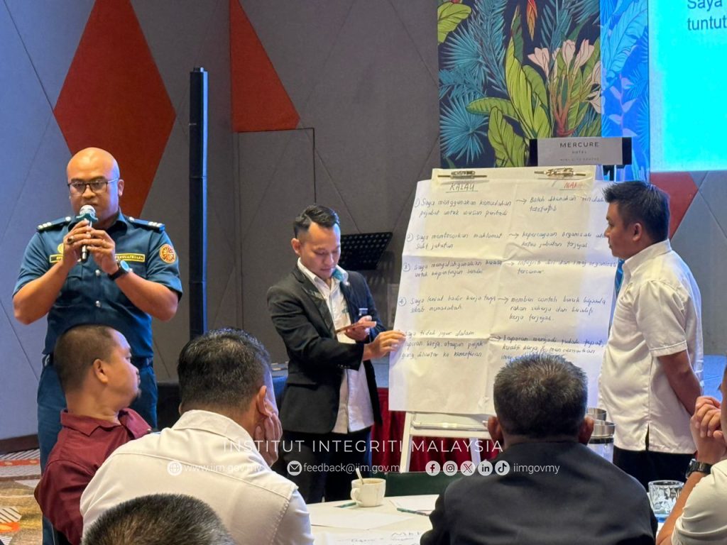 Kursus ini telah disampaikan oleh Puan Munah Abdul Aziz dan Encik Nabil Eiman Azman, Konsultan Pusat Integriti Sektor Awam dan Perniagaan, IIM.
