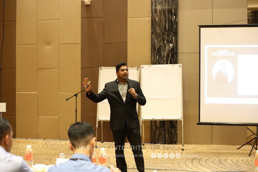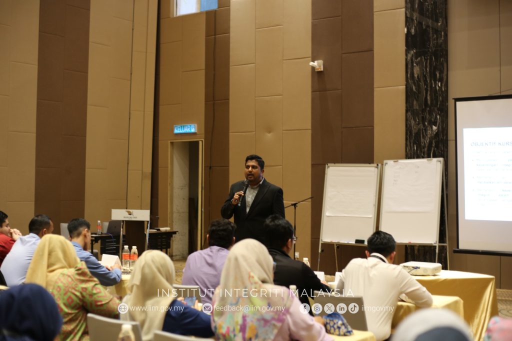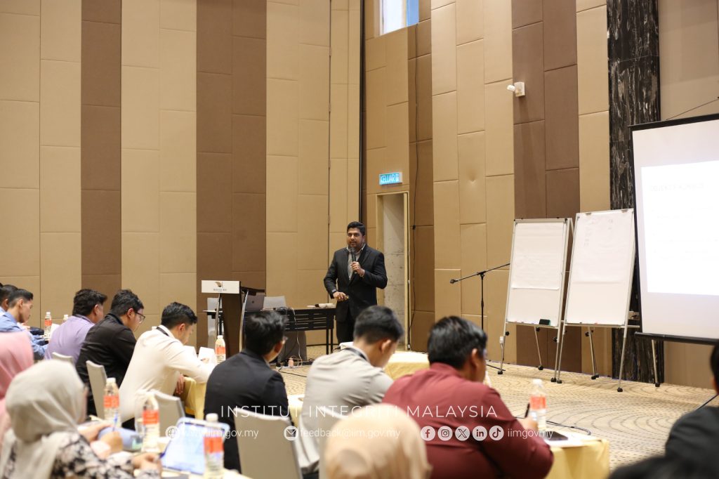 Taklimat bertajuk Pengurusan Integriti ini telah disampaikan oleh Encik Ruben Raj Samuel Konsultan Pusat Integriti Sektor Perniagaan dan Awam (PISPA). Sesi ini bertujuan untuk memberikan pendedahan dan pemahaman berkaitan kepentingan pengurusan integriti dalam perkhidmatan awam, serta memperkukuh nilai-nilai etika dan akauntabiliti dalam kalangan peserta.