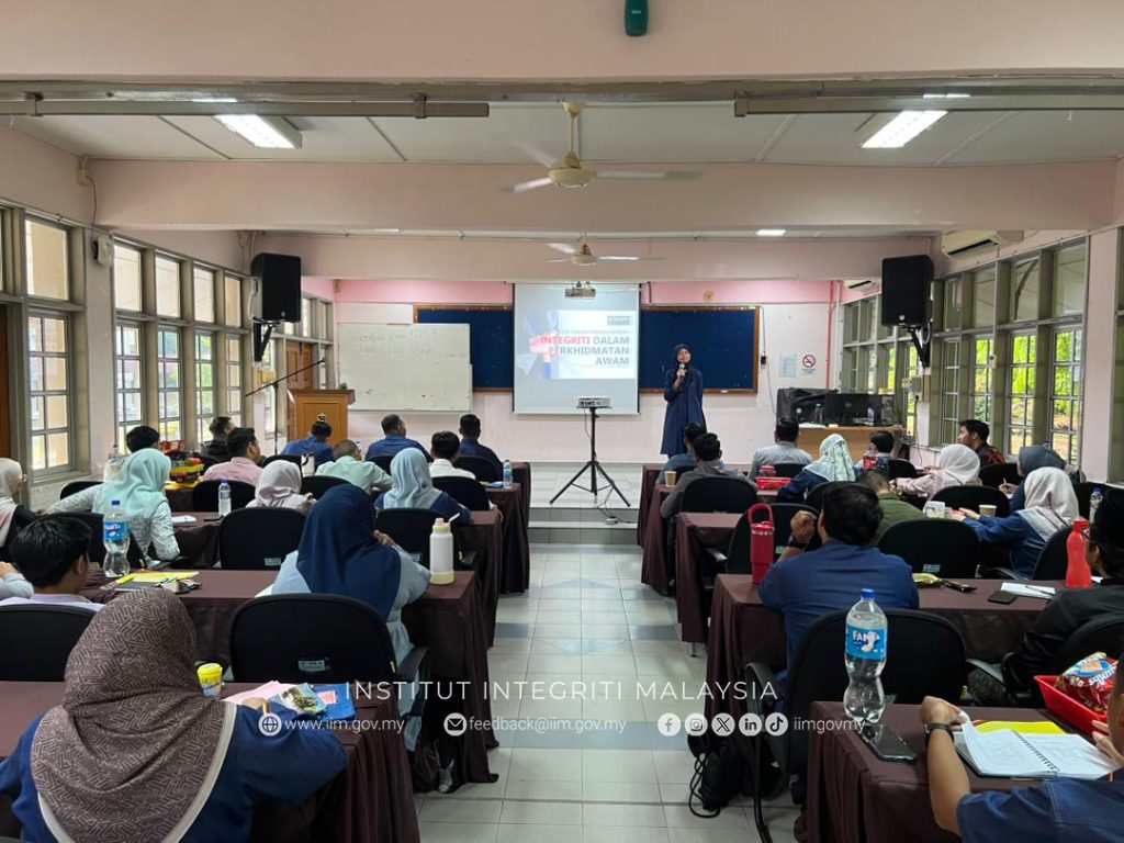 Sesi Pengurusan Integriti ini merupakan salah satu slot wajib dalam Program Transformasi Minda (PTM) yang bertujuan untuk memberi pendedahan serta meningkatkan kesedaran mengenai kepentingan integriti dalam kalangan penjawat awam. Di samping itu, sesi ini turut menekankan penerapan nilai dan pembudayaan integriti dalam perkhidmatan awam berteraskan pengamalan nilai-nilai murni.